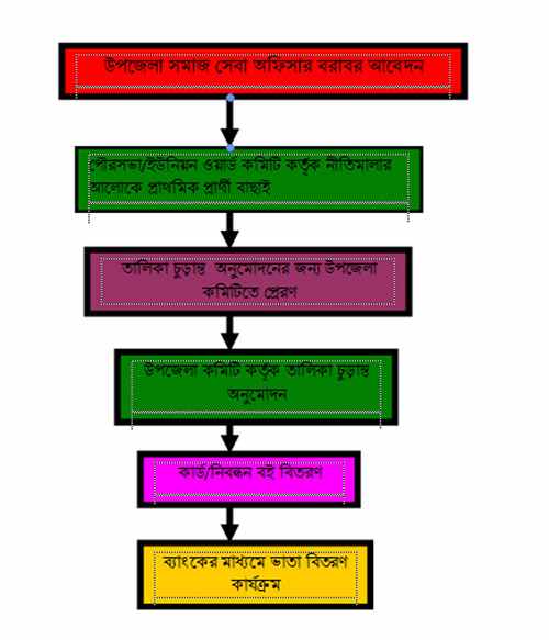 উপজেলা পর্যায়ে দু:স্থ মহিলা, বিধবা স্বামী পরিত্যাক্তা ভাতা প্রদান কার্যক্রম প্রসেস ম্যাপ